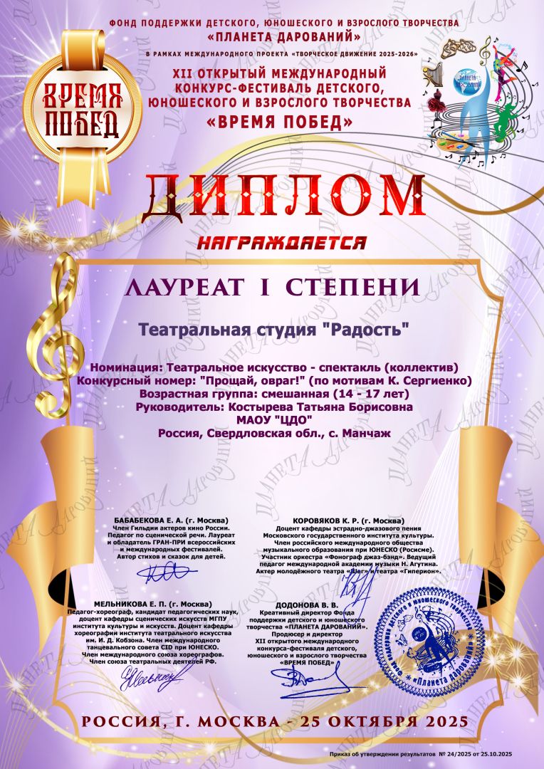 В октябре этого года творческое объединение «Театральная студия «Радость» (МАОУ