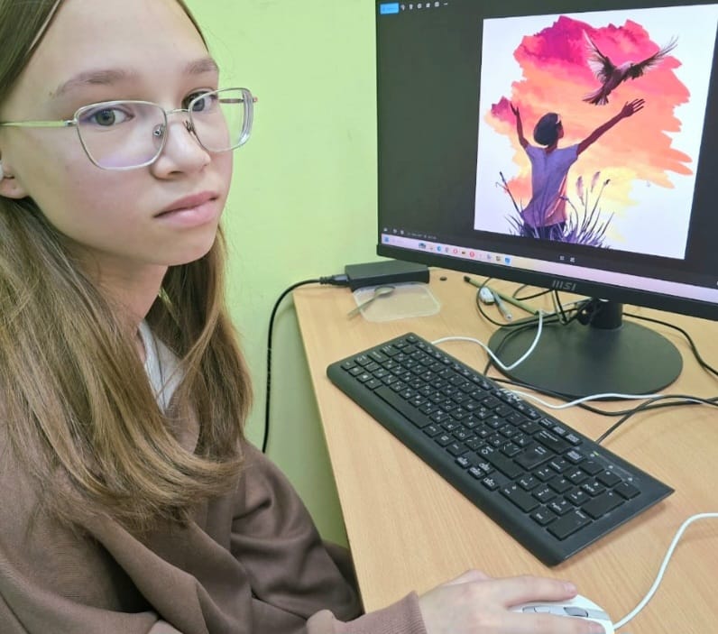 Учащиеся творческого объединения «Компьютерный художник» ежегодно принимают активное участие в областном конкурсе ИЗО «Дорогами добра» в номинации «Цифровая иллюстрация». В этом году участникам предлагалось раскрыть такие направления, как «Птицы в руках» и «Наследие мастера пейзажа».