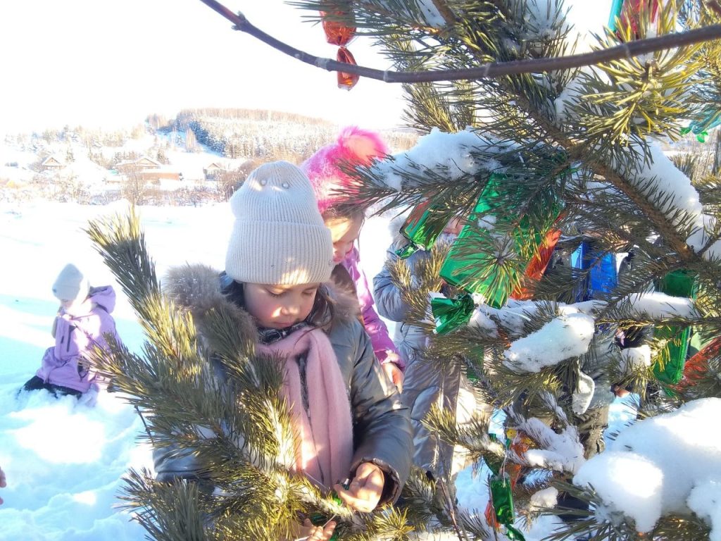 Младшие студийцы творческого объединения «Театральная студия «Радость»(руководитель Т. Б. Костырева), также как и старшие, присоединились к акции «Елки по улице мчатся», проходящей в рамках проекта «Новогодняя гирлянда добра -2026 «, и украсили игрушками лесную гостью, установленную у горки по ул. Школьной.