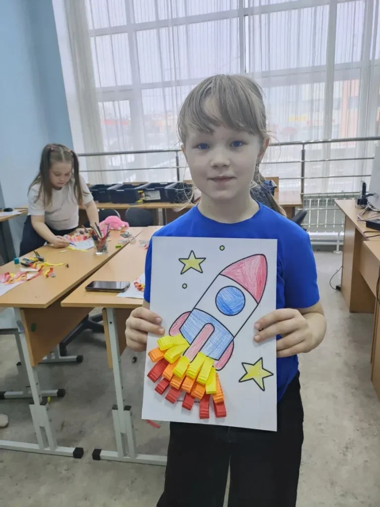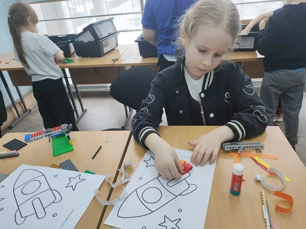 10 апреля 2026 года в МАОУ «ЦДО» прошёл очередной мастер — класс для первоклассников «Школы продлённого дня». В преддверии Дня космонавтики, ребята, под руководством педагога Миндияровой Елены Ивановны, собрали из конструктора Лего устройство для гофрирования бумаги и оформили праздничные открытки, используя сделанные гофрированные полоски из цветной бумаги. В процессе сборки устройства, используя фантазию, учащиеся смело модернизировали его, сделав более удобным для использования. Открытки получились яркими и красочными, не похожими друг на друга. Молодцы, ребята!