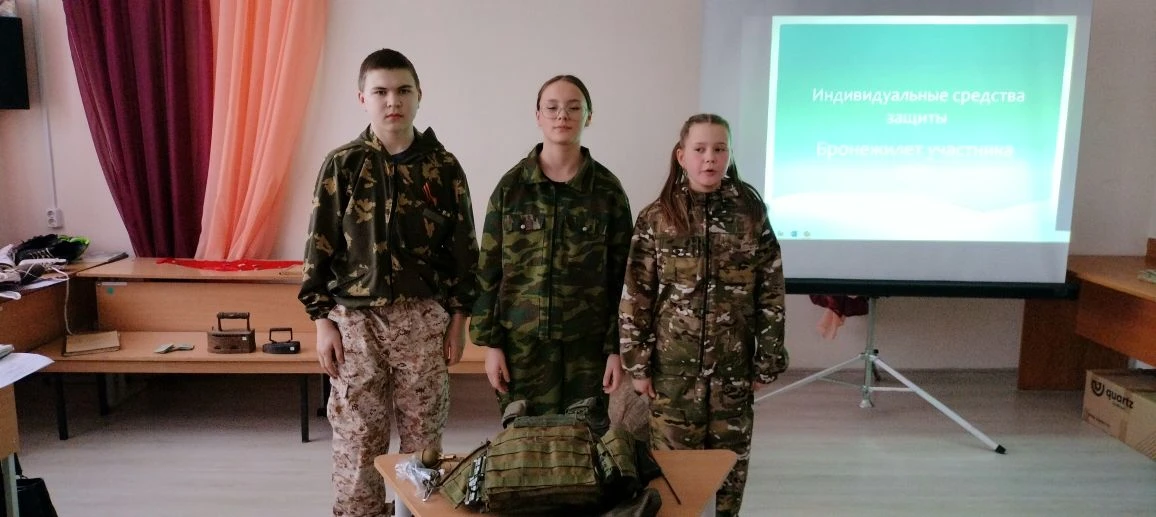 1 м – Каметов Б., Вятченникова Е., Ватолина С., учащиеся филиала МБОУ «Свердловская СОШ им. Героя Советского Союза им. И.С. Мякишева»-«Малокарзинская ООШ», руководитель — Петров Б.М. Экспонат «Бронежилет»;