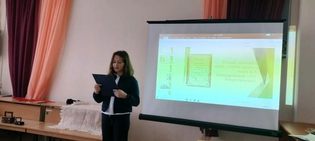 2 м – Федякова Е., учащаяся МАОУ «Староартинская СОШ», руководитель — Баранникова О. Л. Экспонат «Учебник русского языка для начальной школы 1964 года выпуска»;